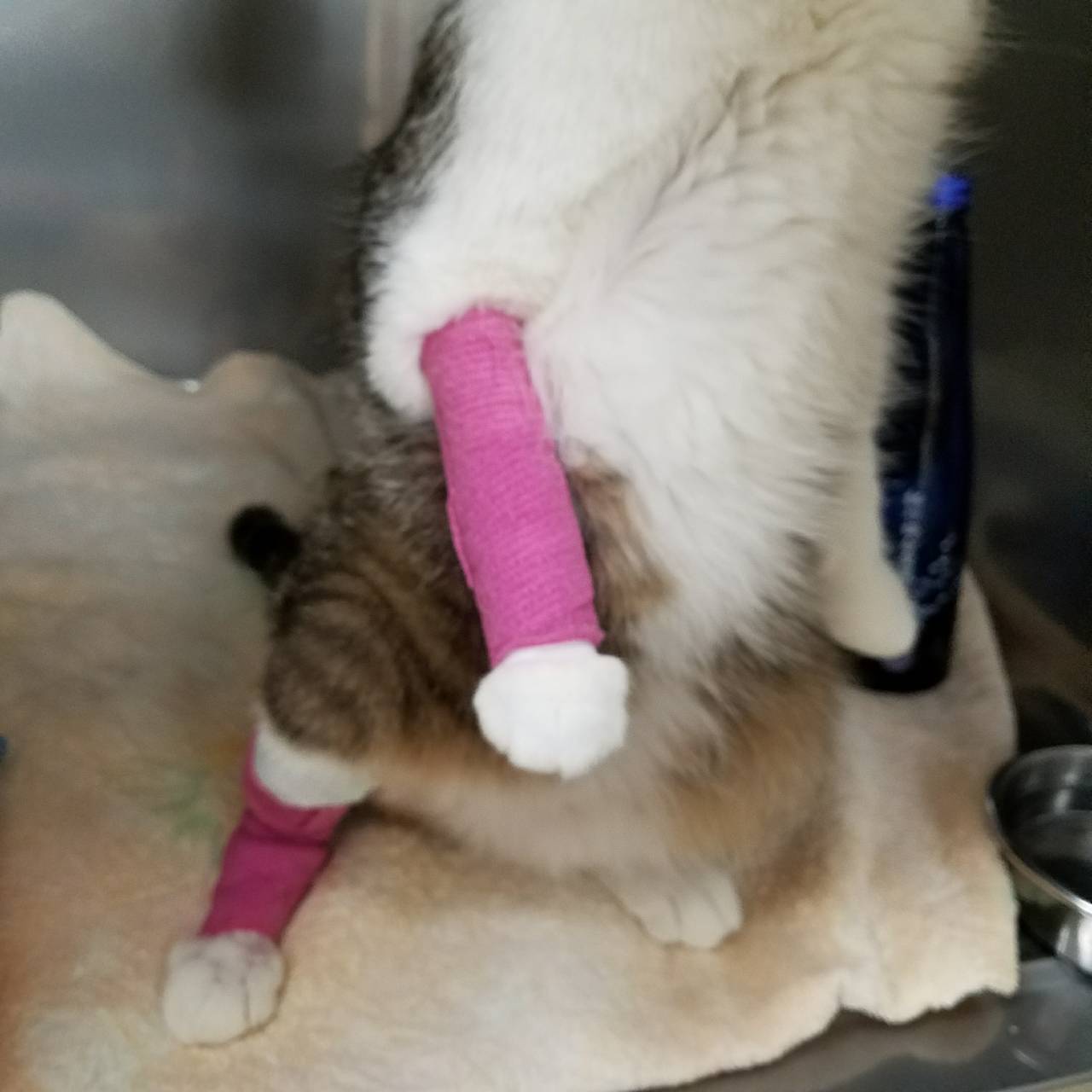 ラン君はトイレを片付ける時に協力的だということは聞いていましたがタオルを敷く時も邪魔をしないようにスタッフの方がやりやすいように動いてくれるそうです。