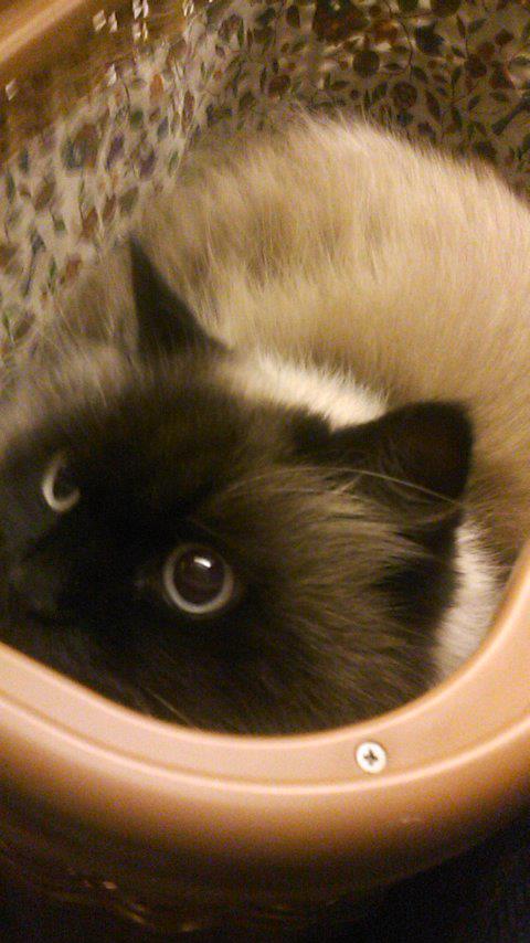 身体はすっぽりトイレに入っているのにお尻としっぽだけ出ているのが滑稽で、怒る気にもなれず(笑)