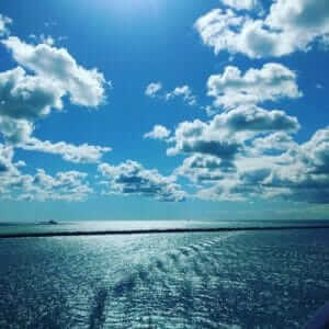 船の外に出ると、たまたま天気がよくて、気持ちも晴れやかに。